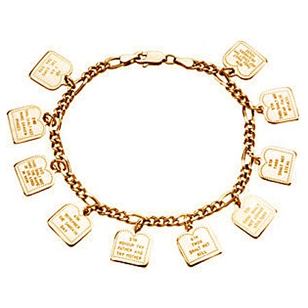 !±8±Ladies 14K Yellow Gold Ten Commandments Charm Bracelet